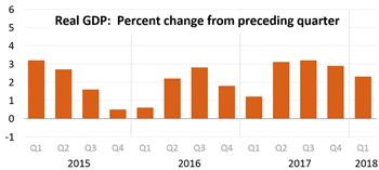 Not a rousing success, but tempered by some caveats First Quarter GDP often disappoints: winter storms, New Year's hangovers, whatever. And the first GDP estimate (there are three) is often adjusted, and often up, as more data becomes available. Early Q1 predictions spanned a range from 2% to 3%+. First quarter federal revenues are often sluggish as well, more so this year with the hit from the Trump Tax Cuts. Employment numbers were a little disappointing. And Steve Mnuchen might have been surprised by private sector wage growth as well, but that having been said, nobody other than Steve expected a much big number than that. It will take some time to see the full effect of the tax cuts on wages. And they didn't go to the average Joe anyway, so probably not much short-term boost to GDP either. And the deficit? Well, you did understand that was going up, didn't you? Well, didn't you? Stated intentions behind the Tax Reform Legislation: