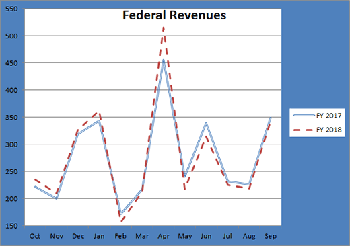 Once the new tax cuts took effect, Federal revenues shrank each month compared to the previous year. The exception was April, where remittances were exceedingly high but were actually last year's taxes paid at last year's tax rates.